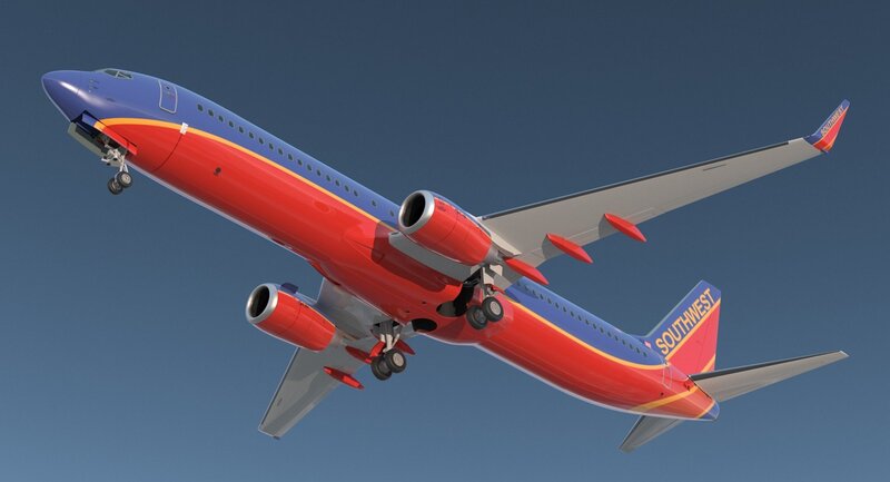 Boeing 737-900 ER Southwest Airlines is ready to be animated. You can easily position it the way you need or animate.