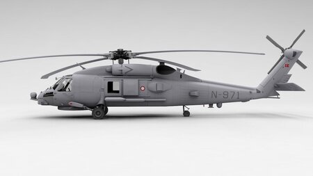 The Sikorsky SH-60/MH-60 Seahawk (or Sea Hawk) is a twin turboshaft engine, multi-mission United States Navy helicopter based on the United States Army UH-60 Black Hawk and a member of the Sikorsky S-70 family. The most significant airframe modification is a hinged tail to reduce its footprint aboard ships. This is a version specific to the Danish Navy's MH-60R. This model contains 4K and beyond textures and easy to work with hierarchy. Two versions come in this collection, a simplified lower poly model in the 50K range with a simple cockpit texture and most all of the exterior details; and a high res version that is subdivided in a factor of 2 with a full cockpit of knobs, switches, and buttons. As a C4D native aircraft you will get the same results out of the model with or without subdivision as a clean easy to use model with proper pivots and hierarchy. Note: All renderings are performed using C4D and do not necessarily reflect other programs or rendering engines. C4D model designed entirely in quads, and for C4D users textures are applied as decals and deformers used for rotor blade. All other models are simplified, subdivision ready with a low poly cockpit with 4K + textures. File Types include: C4D (Native), DAE, MAX, 3DS, FBX, Blender, and OBJ Happy Modelling!