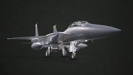 3D model of a McDonnell Douglas F-15E Strike Eagle with PBR textures. The model is low poly (39.931 Tris), game-ready and ready to animate (not animated):