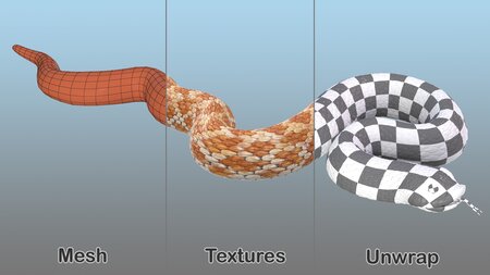 Snakes Collection 5 is a versatile set of 7 high quality, photo real 3d models that will enhance detail and realism to any of your rendering projects. The model has a fully textured, detailed design that allows for close-up renders, and was originally modeled in 3ds Max 2012 and rendered with V-Ray. Renders have no postprocessing.