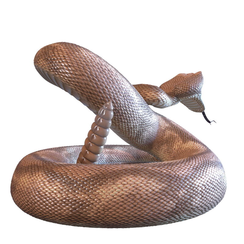 The rattlesnake 3d model Here it is rattlesnakes in six different poses and another one as a billet, which you can use to make your own poses of snake. All objects and all the materials have logical names. Rattlesnake has UVunwrap. Texture prepared by hand. Models and materials are prepared for rendering in Vray.