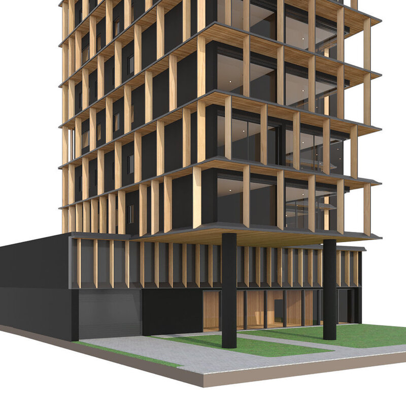 Modern building with usable interiors. All wooden slats, both internal and external, have Corona Randomizer that makes it very easy to randomize color and uvw direction. Despite the size, the file is not heavy to work with. All textures are in Corona legacy so they can be used in previous versions of corona however as it has materials using Corona uvw randomizer it would be ideal to be used from Corona 6.