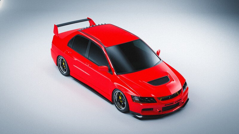 3D model of the Mitsubishi evo 9 with cosmis XT-006R wheels and toyo tires
