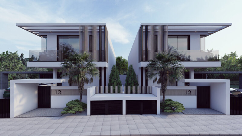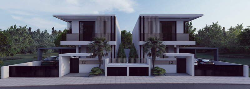 2 Semi-Detached houses exterior 3d modeling exterior and ground floor interior. Lumion file is with materials and settings preset for rendering.