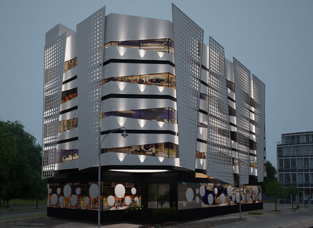 Commercial building 3D exterior Scene is a high-quality 3D model with complete urban environment, city street with buildings, cars and trees , that can be used to create a realistic and engaging scene. The product is easy to use and can be customized to create a residential scene that meets your specific needs. You can add or remove 3D models, change the textures, and adjust the lighting to create a scene that is both visually appealing and informative. Formats: