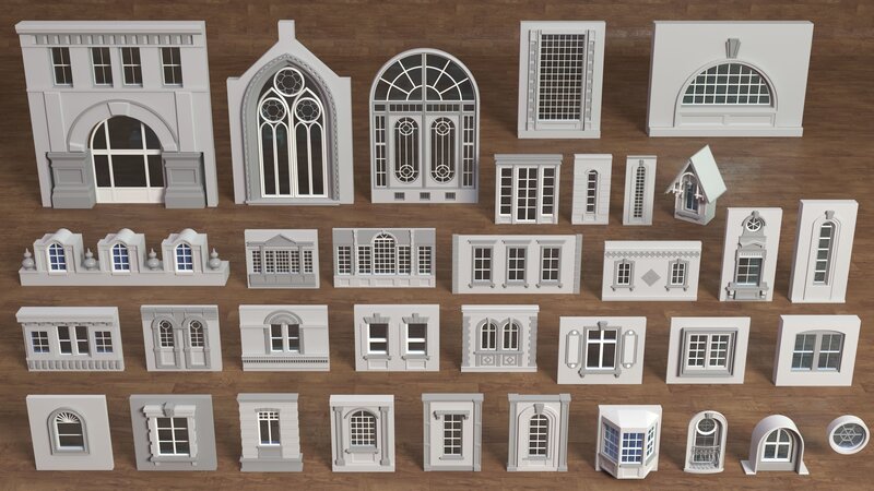 Building Facade Collection 3 - 34 pieces 3D model