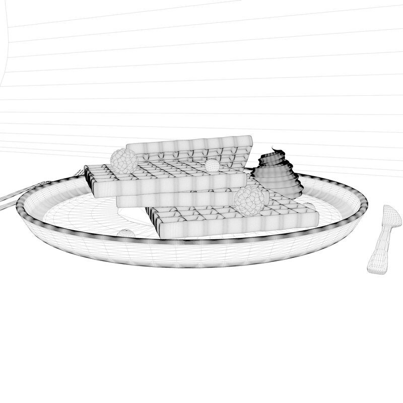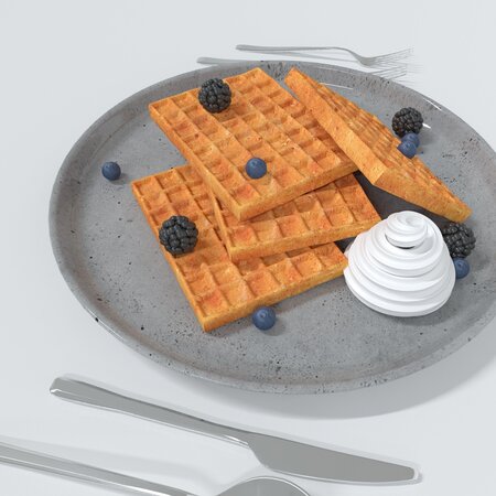 Model is suitable for breakfast scenes, patisserie scenes and also for cafe bars or restaurants if you need some waffle to make a pleasant atmosphere.