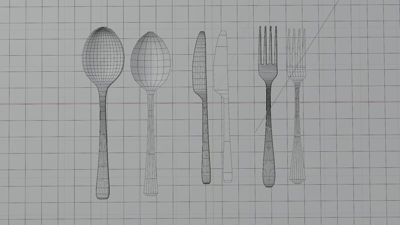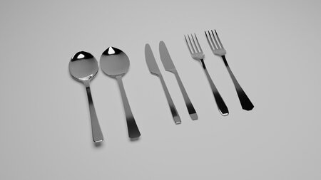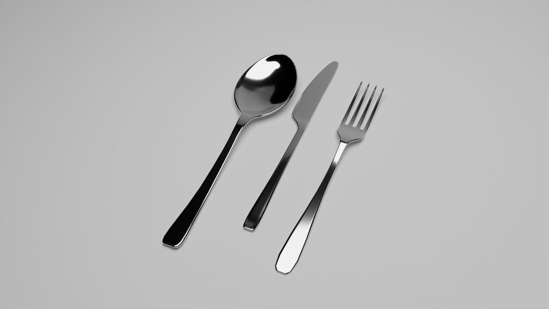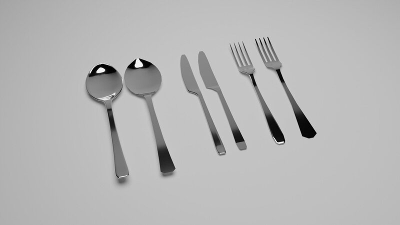 High and low poly knife,spoon,fork. Project is made in blender 3.31, rendered in cycles render.
