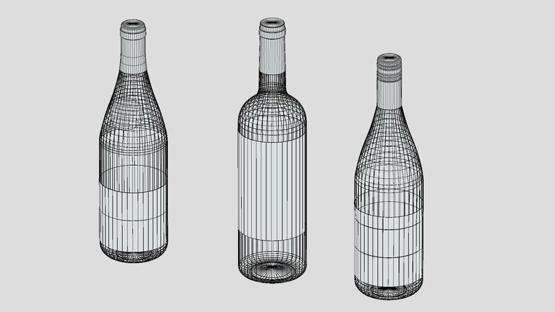 3 Wine Bottles Low Poly PBR Low-poly 3D model