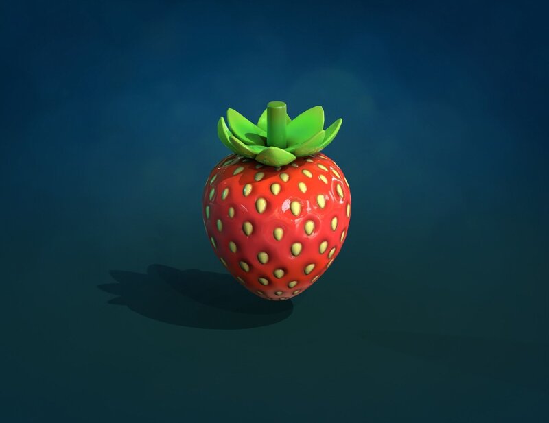 PBR textured strawberry model. 4098 triangular faces.