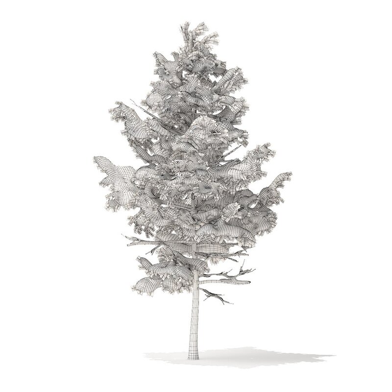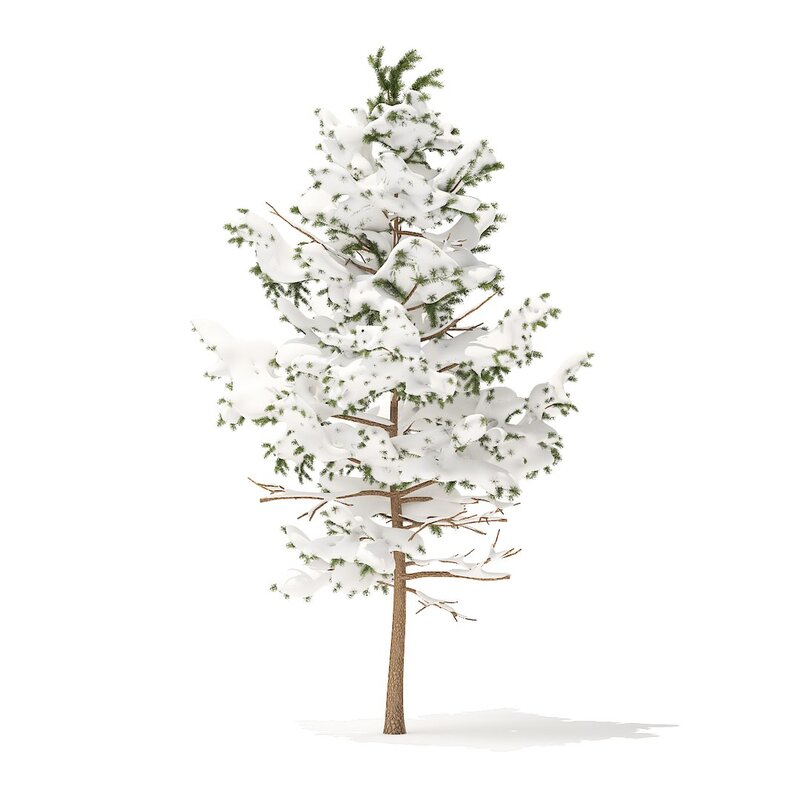 Pine tree with snow 3d model. Height: 5.1m. Compatible with 3ds max 2010 (V-Ray, Mental Ray, Corona) or higher, Cinema 4D R15 (V-Ray, Advanced Renderer), FBX, OBJ and VRMESH.