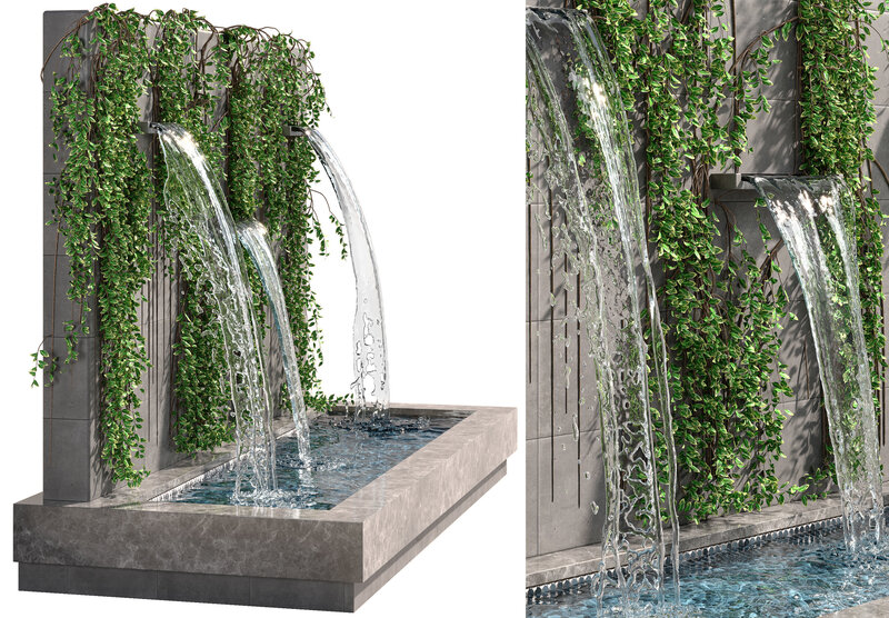 Wall fountains with ivy
